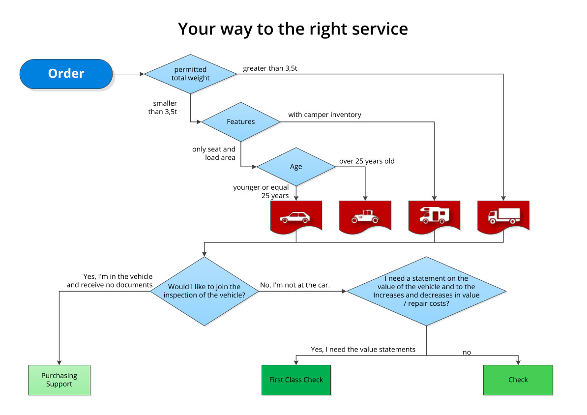 Note: If it turns out after placing the order that the vehicle to be inspected belongs to a different vehicle category, this will involve a rebooking or withdrawal of the order, which may result in longer processing time and fees. Therefore, make absolutely sure that you select the correct vehicle category before placing the order.