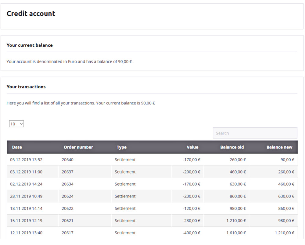 After the payment, the credit balance will be displayed in your customer account and can be redeemed.
