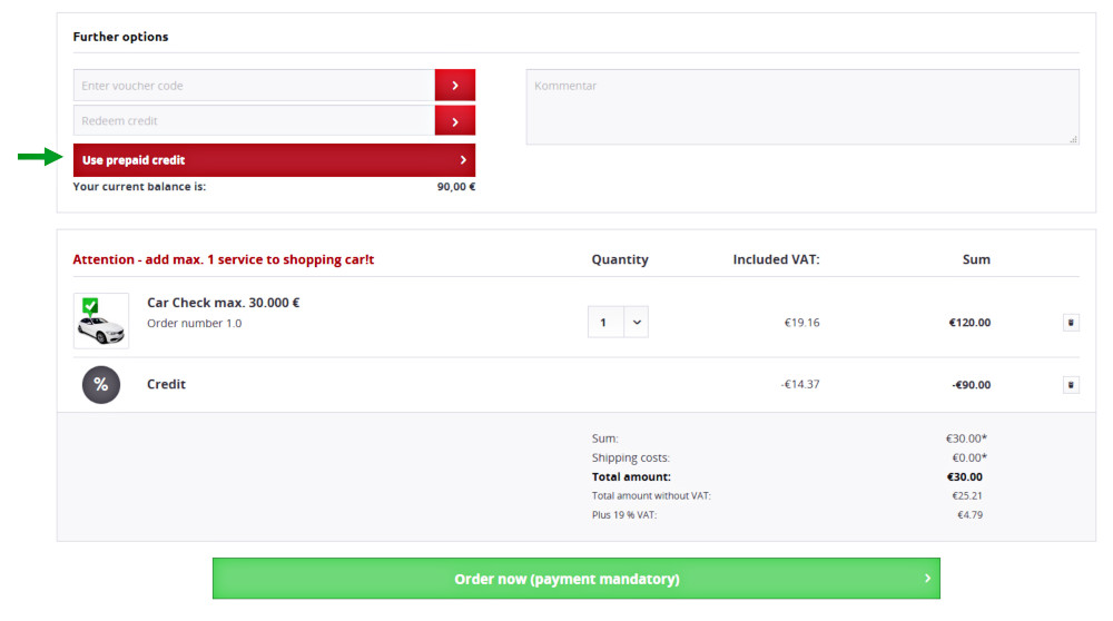 Theoretically, it is possible to add multiple appraisals to the shopping cart (e.g. one car check and one first class check or multiple checks for different vehicles). However, it is not possible to enter the order details and vehicle data for multiple appraisals at the same time. This must be done separately for each individual order.