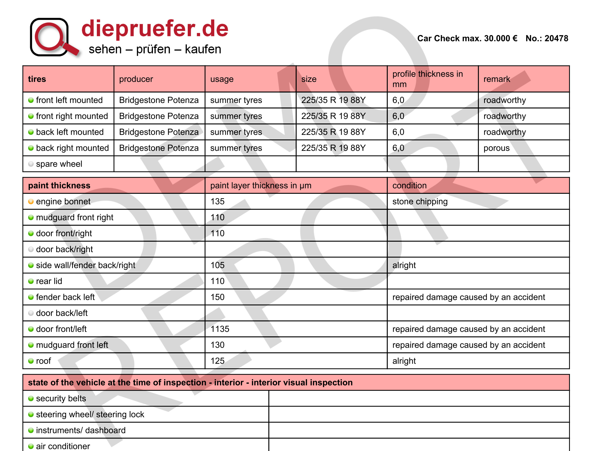 Of course, you can leave this to the professionals: Used car snapshot from diepruefer.de (link).