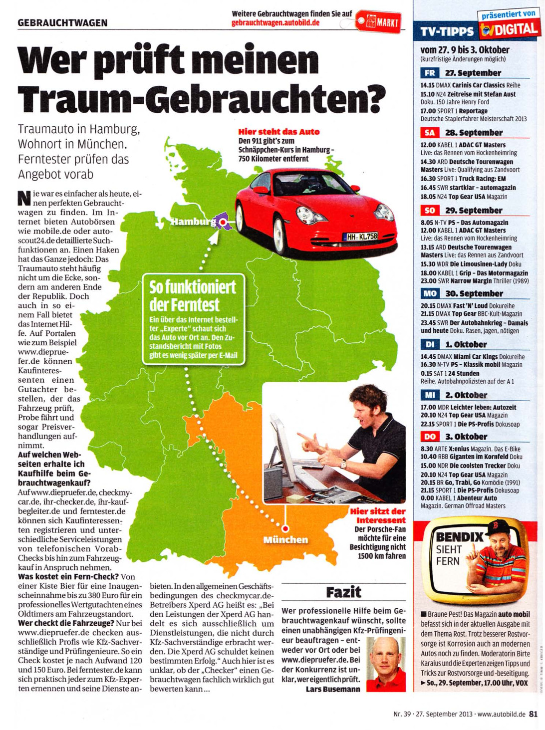 27. September 2013 - AUTO BILD empfiehlt diepruefer.de